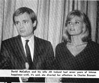 When David left Hollywood for location filming in England, he did not know he would come back to an empty house. A lot of other people had a strong suspicion, though. Ever since David's wife Jill opened an art gallery with actor Charles Bronson it was obvious they were more than just "friends." Besides the fact that Jill had never spent so much time away from the home before (she had mostly given up her career to be David's wife and mother of his children), all her free hours were spent with Bronson. And then when she announced her plans to resume her career full time in Shane for the fall TV season, it was plain what was going on. Plain to everyone except David. But now he knows.